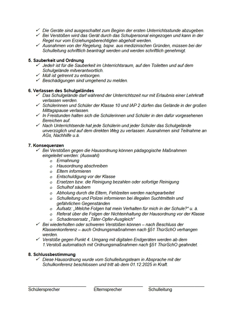 Weitere Informationen erfolgten über die Klassenlehrkräfte.