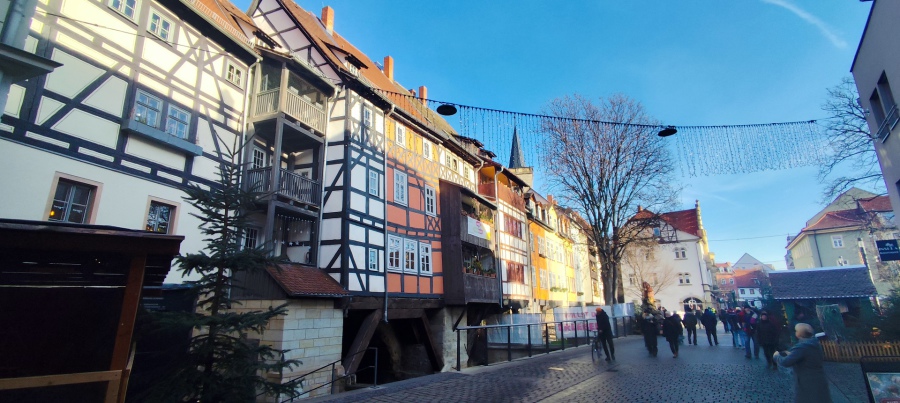 #KrämerbrückeErfurtAußenansichtFachwerkHäuserHistorischLängsteDurchgehendBebauteBrückeEuropaTouristenHighlightWeihnachtszauber